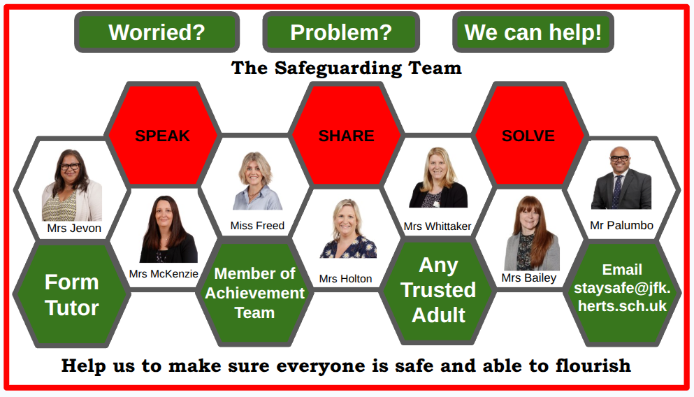 If you have an urgent concern about a child please contact us on staysafe@jfk.herts.sch.uk
